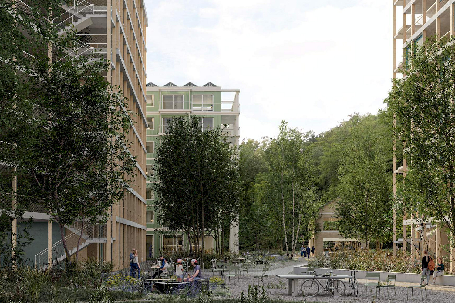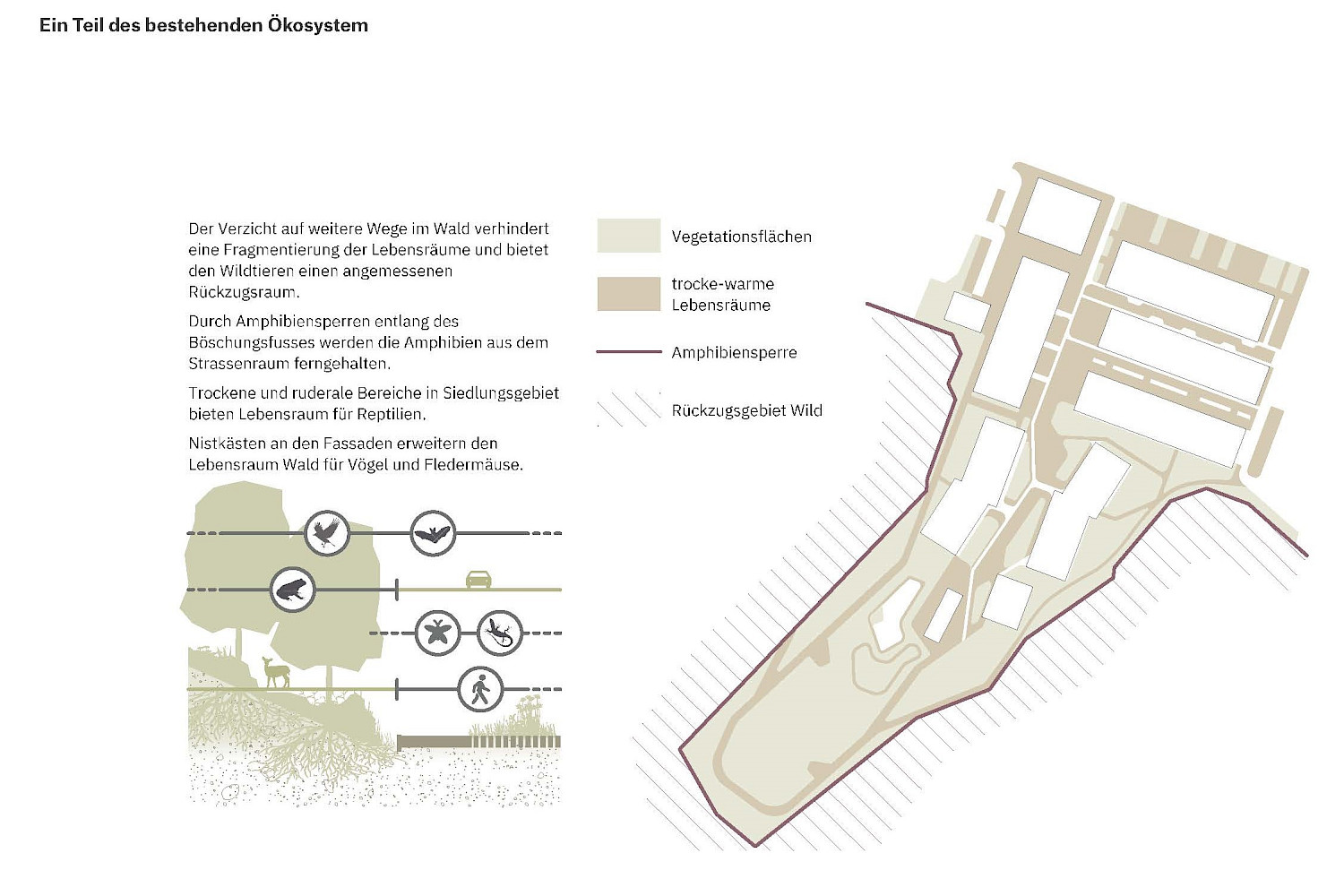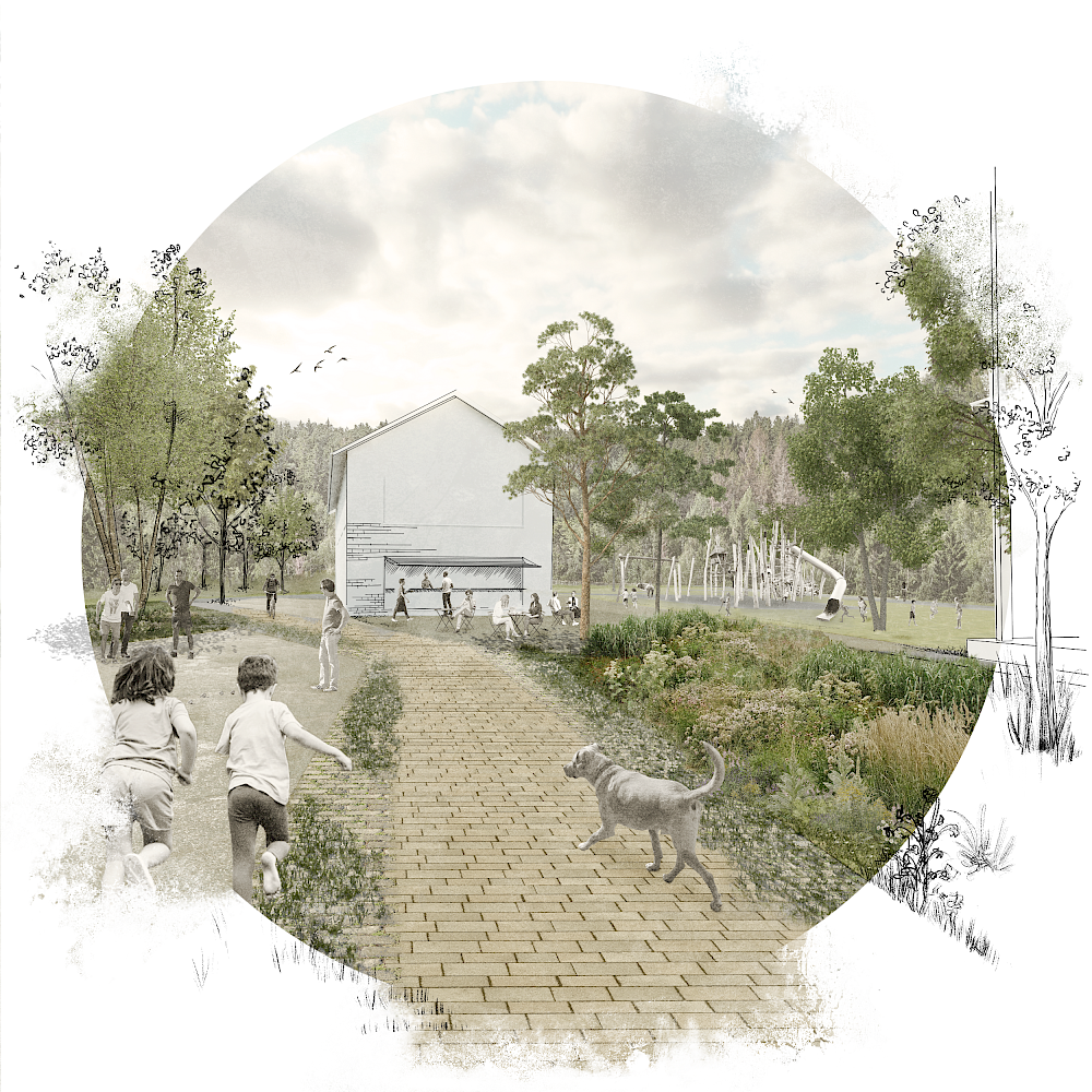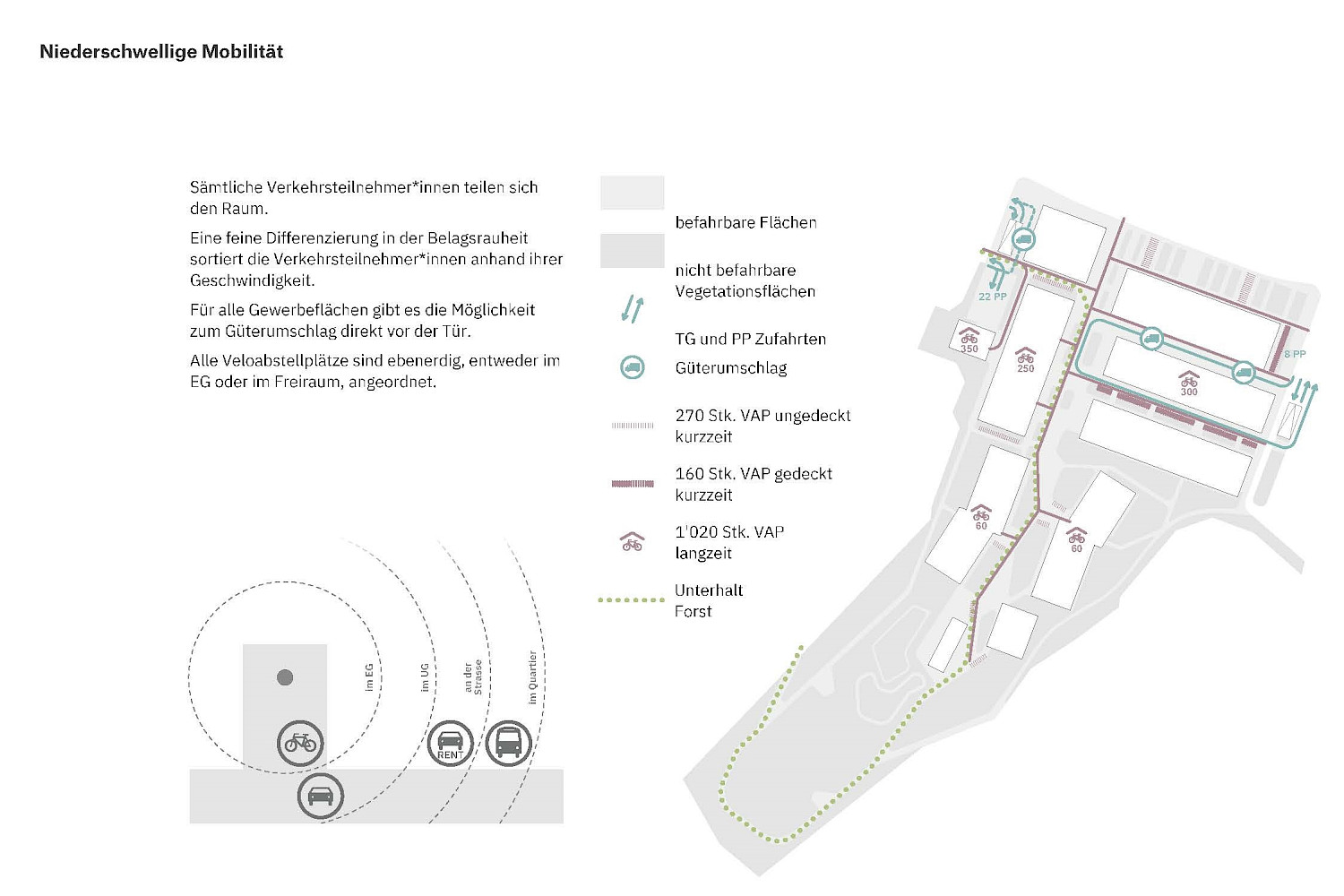Die Gemeinde sowie die Eigentümerin beabsichtigen auf dem ehem. Ziegeleiareal zusätzlich auch Wohnnutzungen zuzulassen und somit ein urbanes Wohn- und Gewerbequartier zu realisieren. Die Anforderungen an die neue Überbauung sind vielfältig. Das neue Areal soll neben seiner öffentlichen Ausstrahlung, der Koexistenz zwischen Öffentlichkeit, Urbanität und den Bedürfnissen nach Privatheit im Quartier gerecht werden. Eine entscheidende Rolle spielt dabei die Ausformulierung glaubwürdiger Aussenräume, die eine Wohnnutzung im EG ermöglichen. Die Vernetzung von Innen- und Aussenraum und der Zugang zu gemeinschaftlichen Sozialräumen unter Einhaltung der Privatheit, sind ein zentrales Thema für die Ausbildung eines zukunftsfähigen Raumgefüges