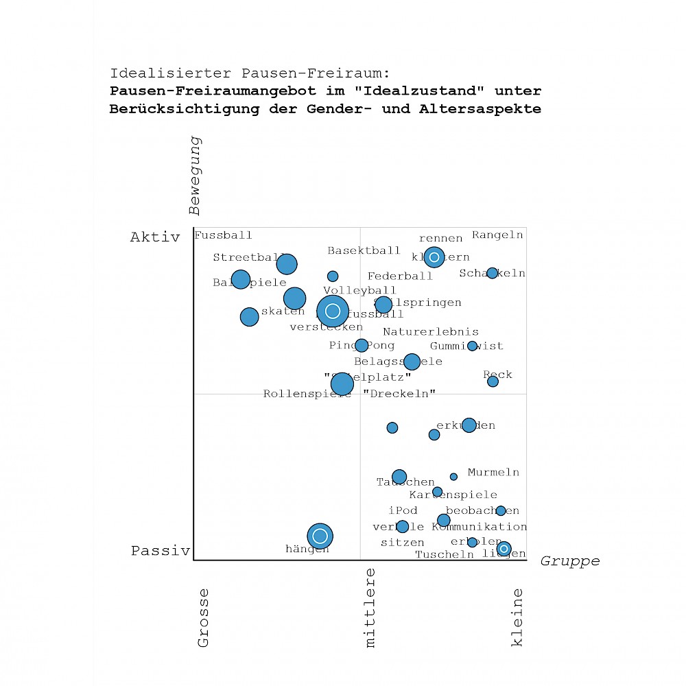 Unter der Prämisse Neu und Alt zusammenzubinden werden die Bedürfnisse des neuen Schulhauses sowie Aufwertungsmassnahmen für den Schulbetrieb des Angelrainschulhauses aufgenommen und umgesetzt. Auf sensible Art ergänzt und überformt das Projekt die bestehende Anlage mit wenigen Eingriffen, wodurch der ehemalige Freiraumcharakter erhalten bleibt und die Schulanlage im Sinne der aktuellen Erkenntnisse der Pädagogik aufgewertet wird. Spielplätze mit differenzierten Spiel-, Bewegungs- und Sozialisierungsmöglichkeiten bilden ein neues Zentrum und neben einem charakteristischen Pausendach neue Identitätsmomente für die PrimarschülerInnen.